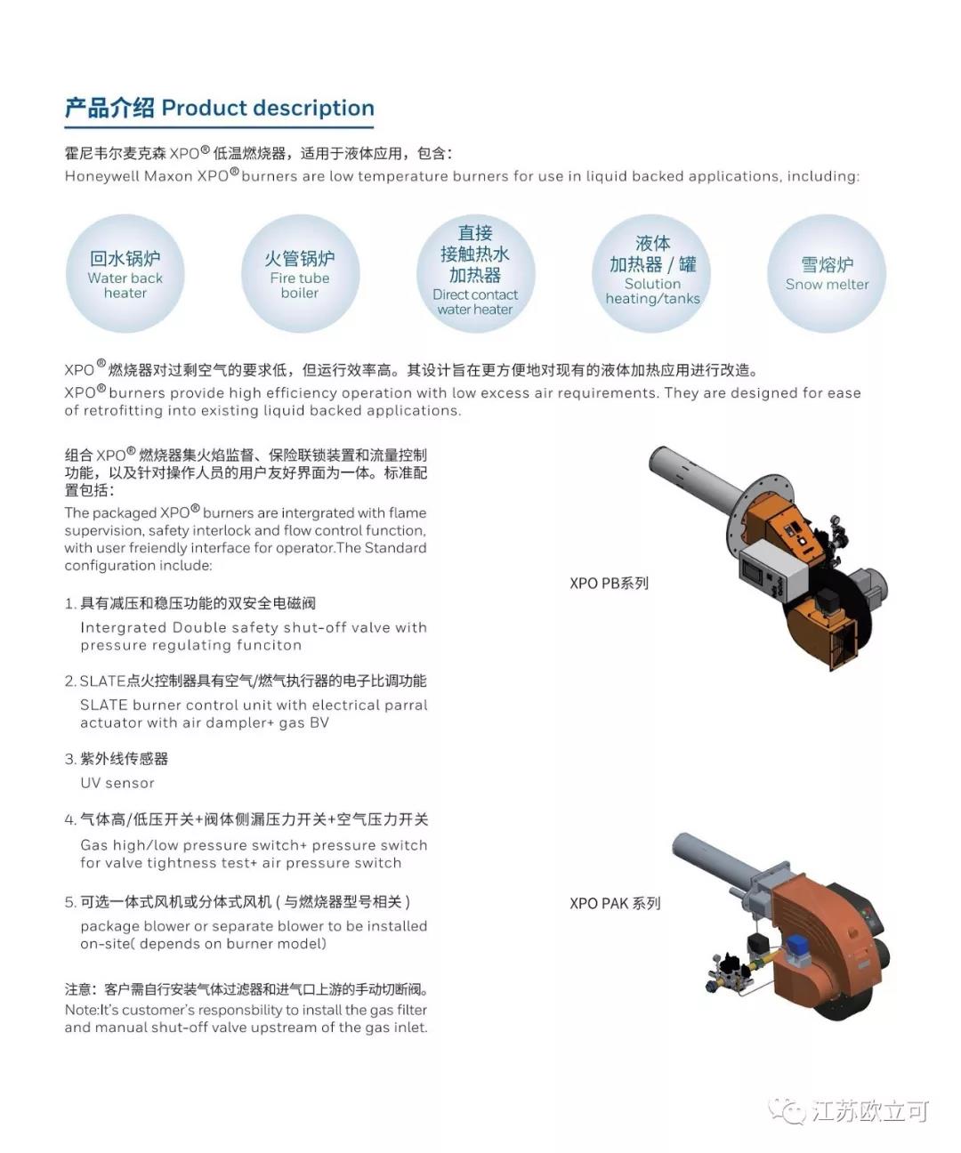 江蘇歐立可環保科技有限公司2019年11月25至27日參加上海新國際供熱技術博覽會。公司作為英國熱馬HEATHORSE燃燒器中國總代理,在行業內致力于為客戶提供國家最高標準下的改造升級業務;以具有國際先進水平的高新技術為核心,將世界先進燃燒器產品及技術引進并推廣,今年有了美國霍尼韋爾的加入,定能為客戶提供更優秀的節能高效鍋爐燃燒系統解決方案。