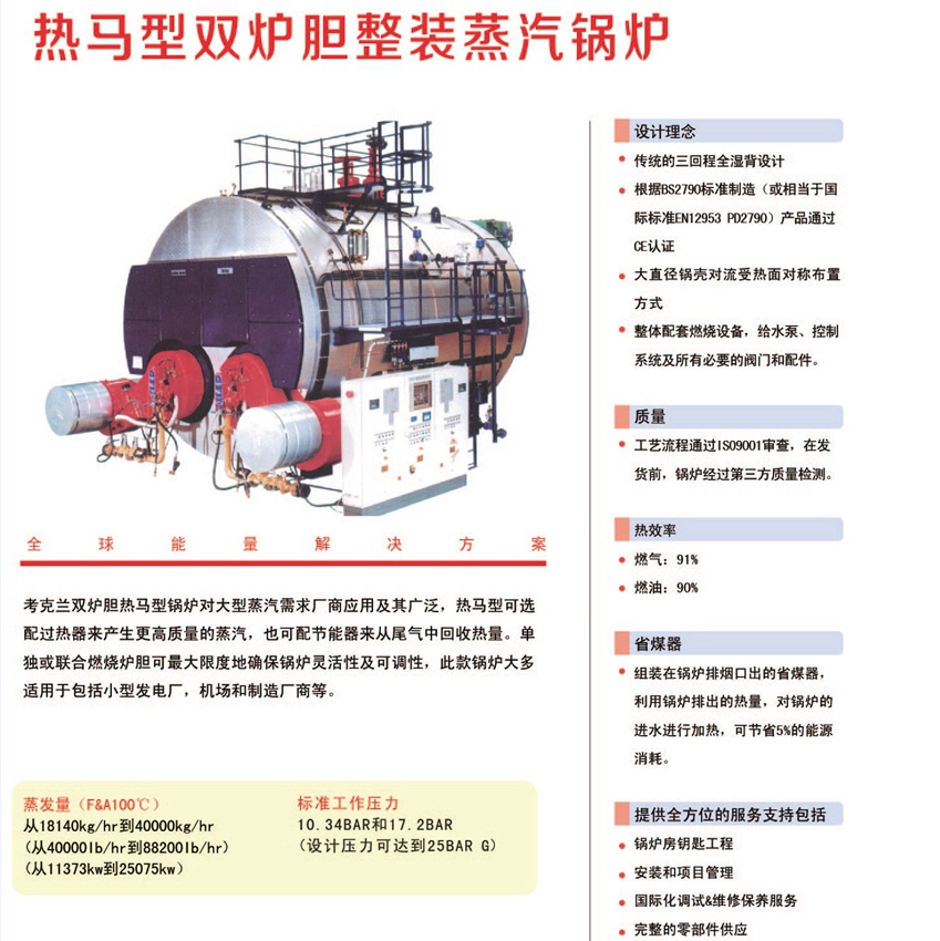 熱馬型雙爐膽整裝蒸汽鍋爐